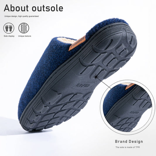 House Slippers For Men Suede Felt Winter Home Shoes indoor outdoor