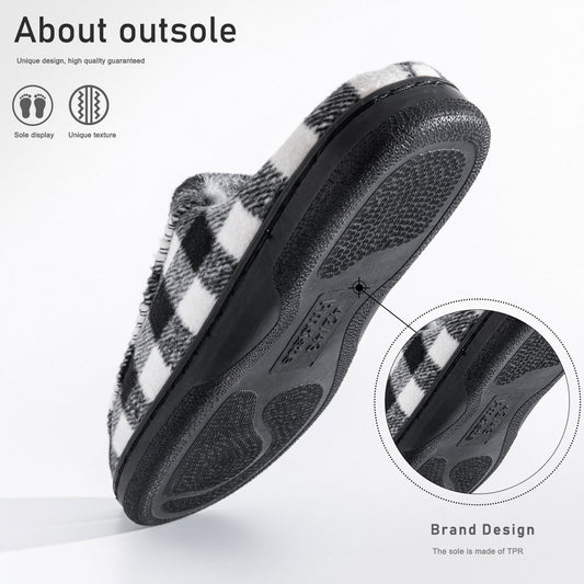 House Slippers For Men Flannel Plaid Fuzzy Plush Winter Home Shoes