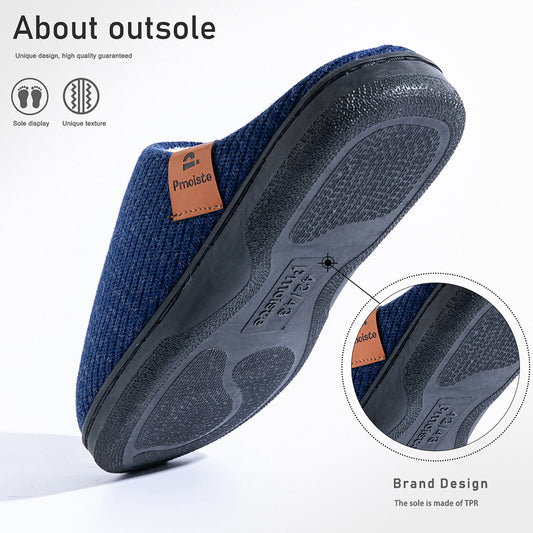 House Slippers For Men Corduroy Stripe Winter Home Shoes Indoor