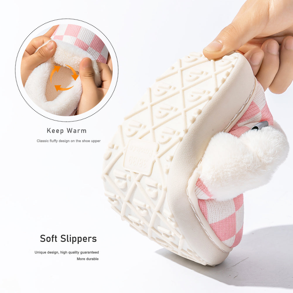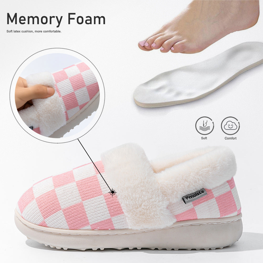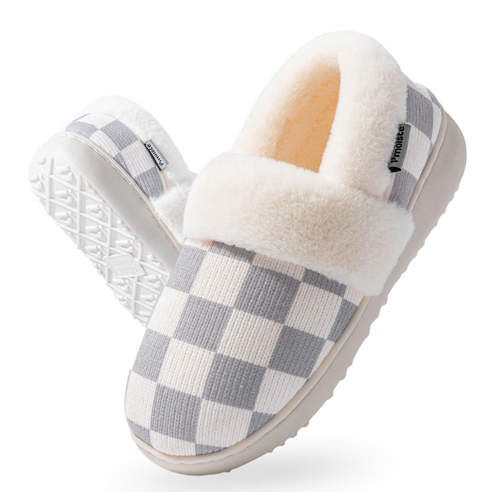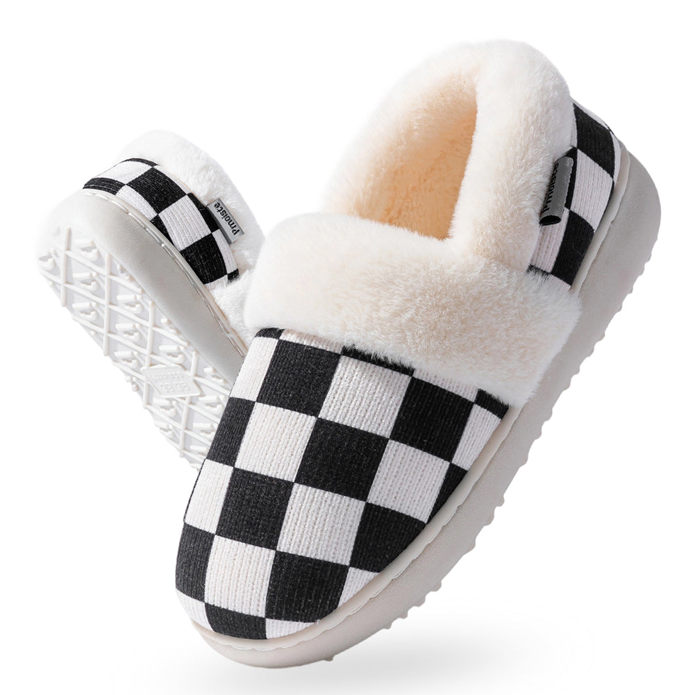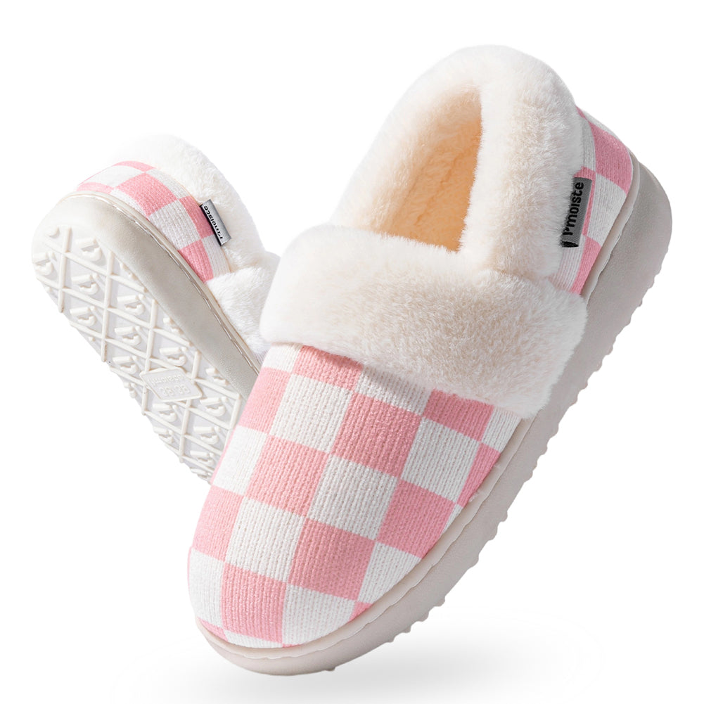 Knitted upper:Women's house slippers with a knitted plaid upper. Warm, breathable, and elegantly designed for winter comfort at home.