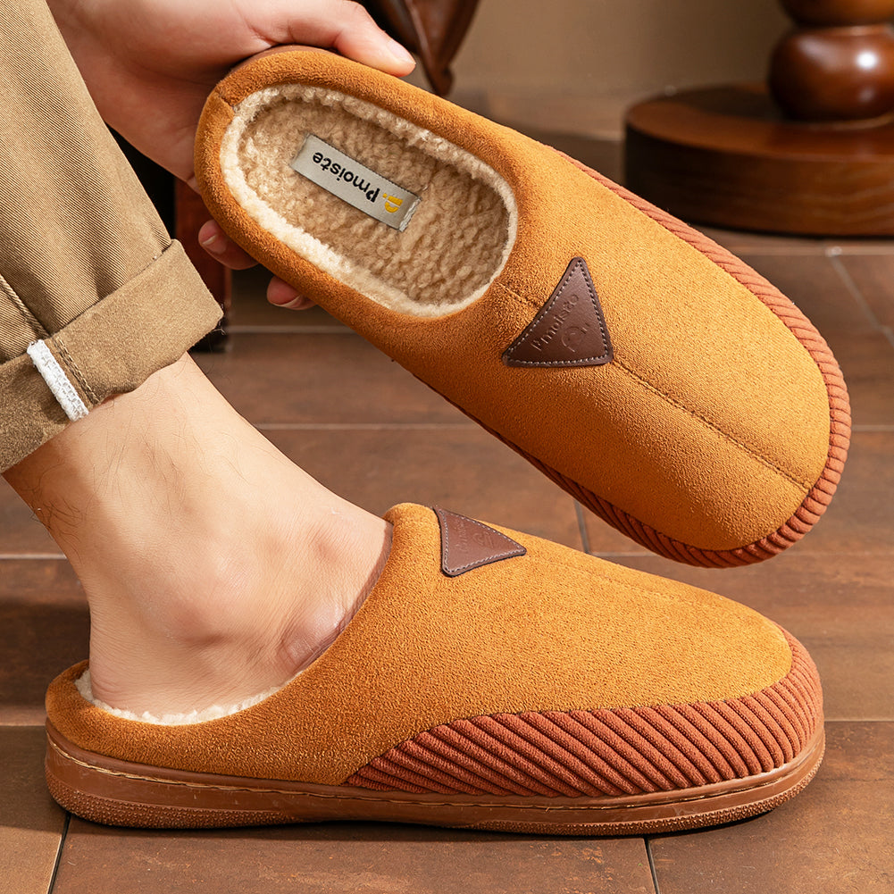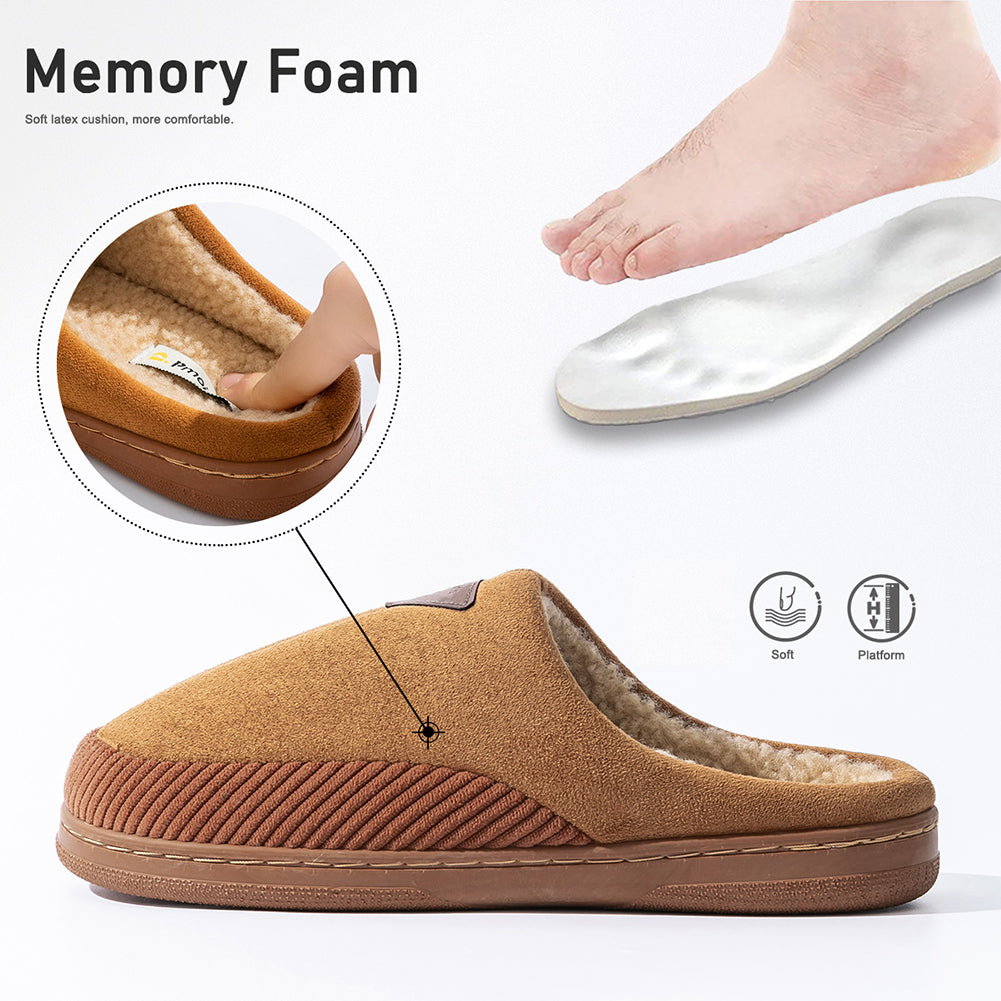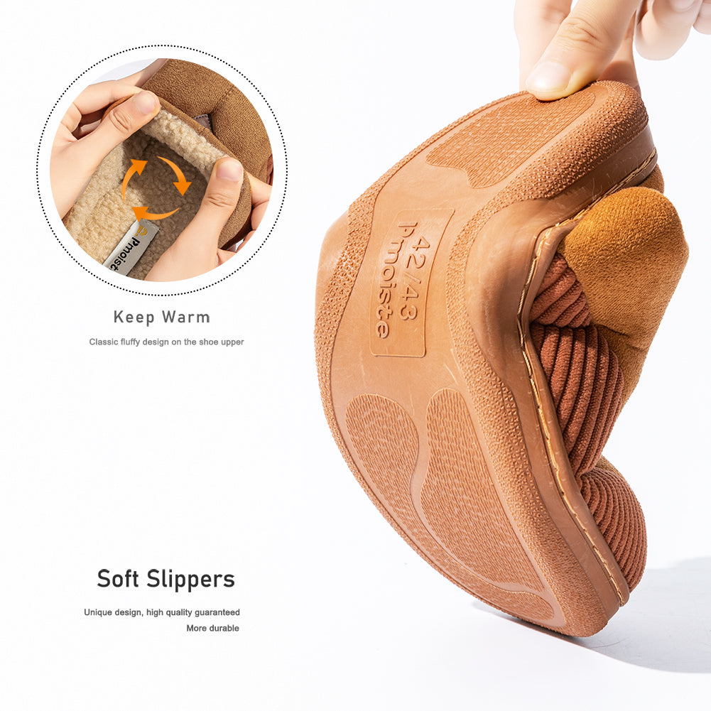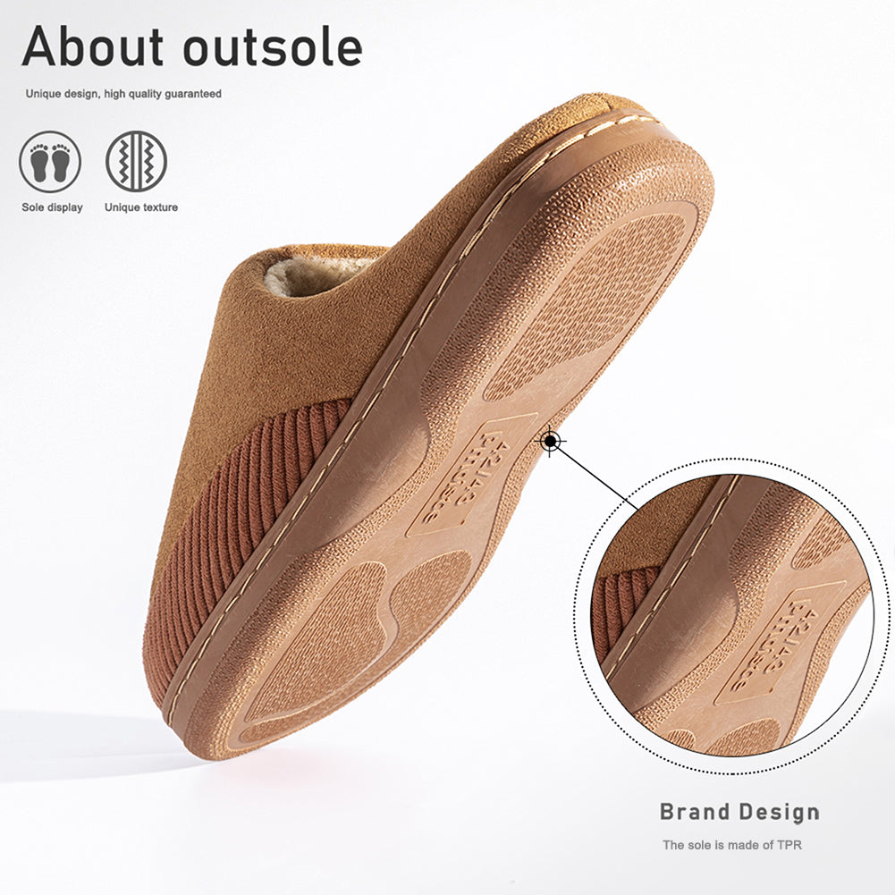 House Slippers For Men Corduroy Patchwork Design Winter Home Shoes indoor