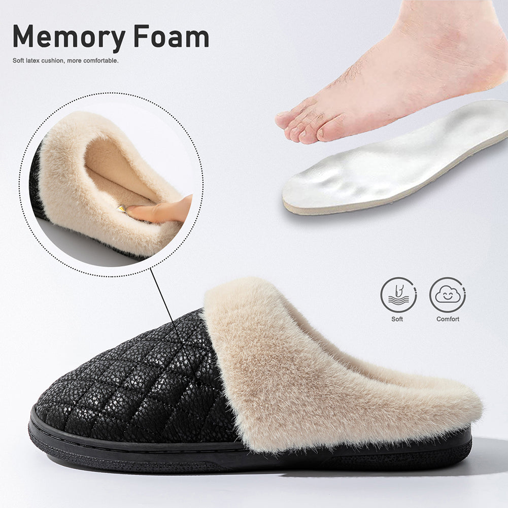 House Slippers For Men Women Plaid Design Winter Home Shoes Indoor PU