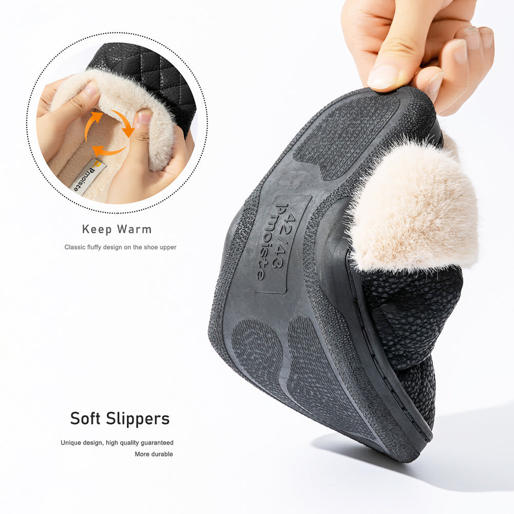 • Fuzzy lining:Soft fuzzy lining throughout traps warmth and shields your feet from cold floors, delivering consistent comfort with every step.